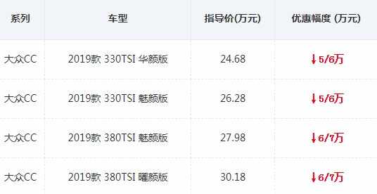 大众CC作为一款运动型轿车,一直以来都很受欢迎。有很多想要购车的朋友提到这么一个问题,23万大众cc能落地吗?目前19款已停产,在售的国五/国六2.0L的330TSI华颜版是当中售价最低的,指导价为24.68万。23万可以落地老款或低配乞丐版,具体落地价格可参考以下车型: