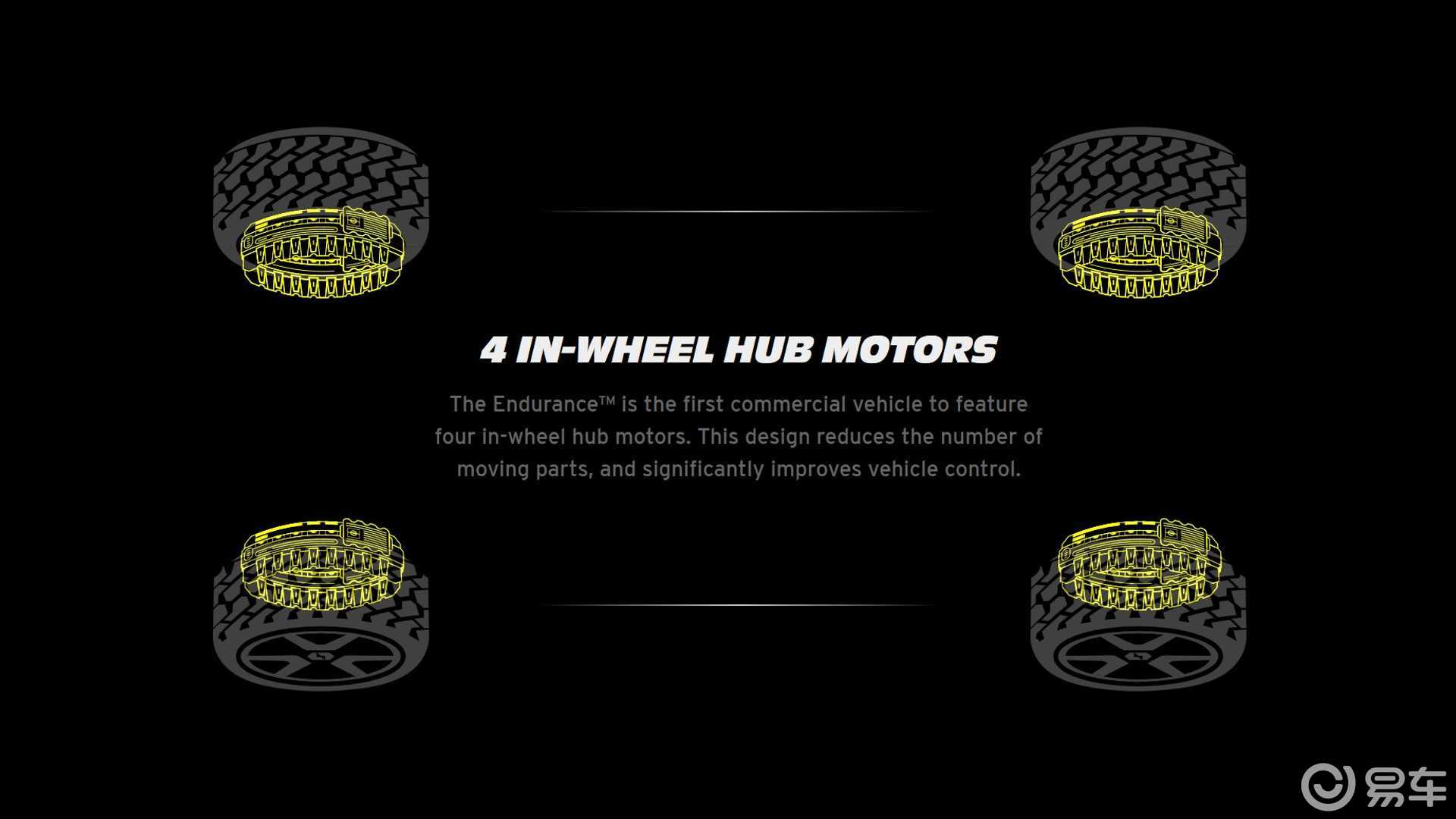 另一个重要的信息是,Endurance将采用全轮驱动系统,四个车轮带有四个轮毂电机。考虑到RIVIAN公司推出的R1T就采用全轮驱动,Endurance的这一举动也就不觉得奇怪了。