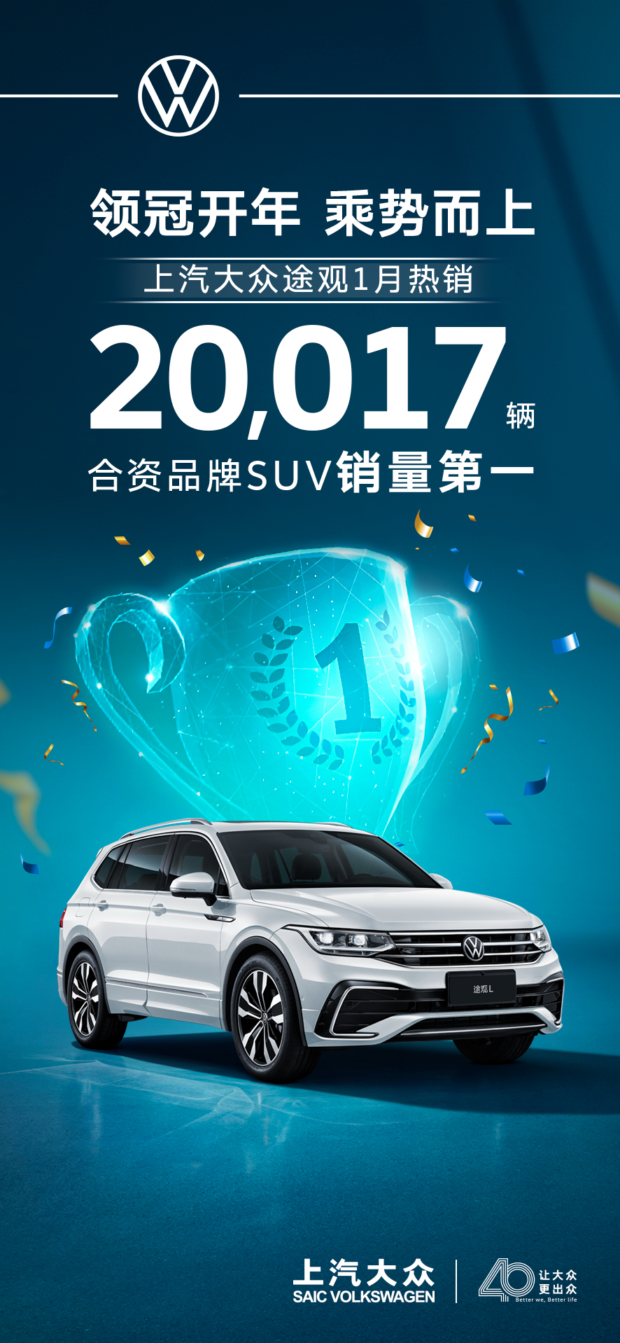 产品系列的不断焕新,更懂用户的营销举措,叠加经久不衰的品质口碑,助力大众品牌在1月率先实现销量突围。这个龙年,大众品牌将用更多创新、智能的产品,和用户一起“共展龙图”。