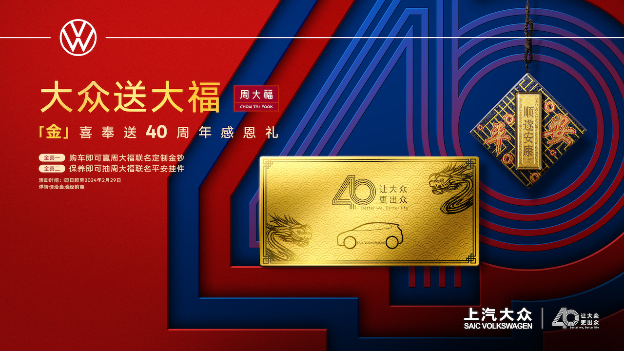 今年开年,上汽大众联合周大福推出一系列“大众送大福”40周年感恩礼活动,给用户送上“第一桶金”,当高保值产品和黄金相遇,上汽大众精准拿捏年轻人情绪价值,持续受到用户热捧。