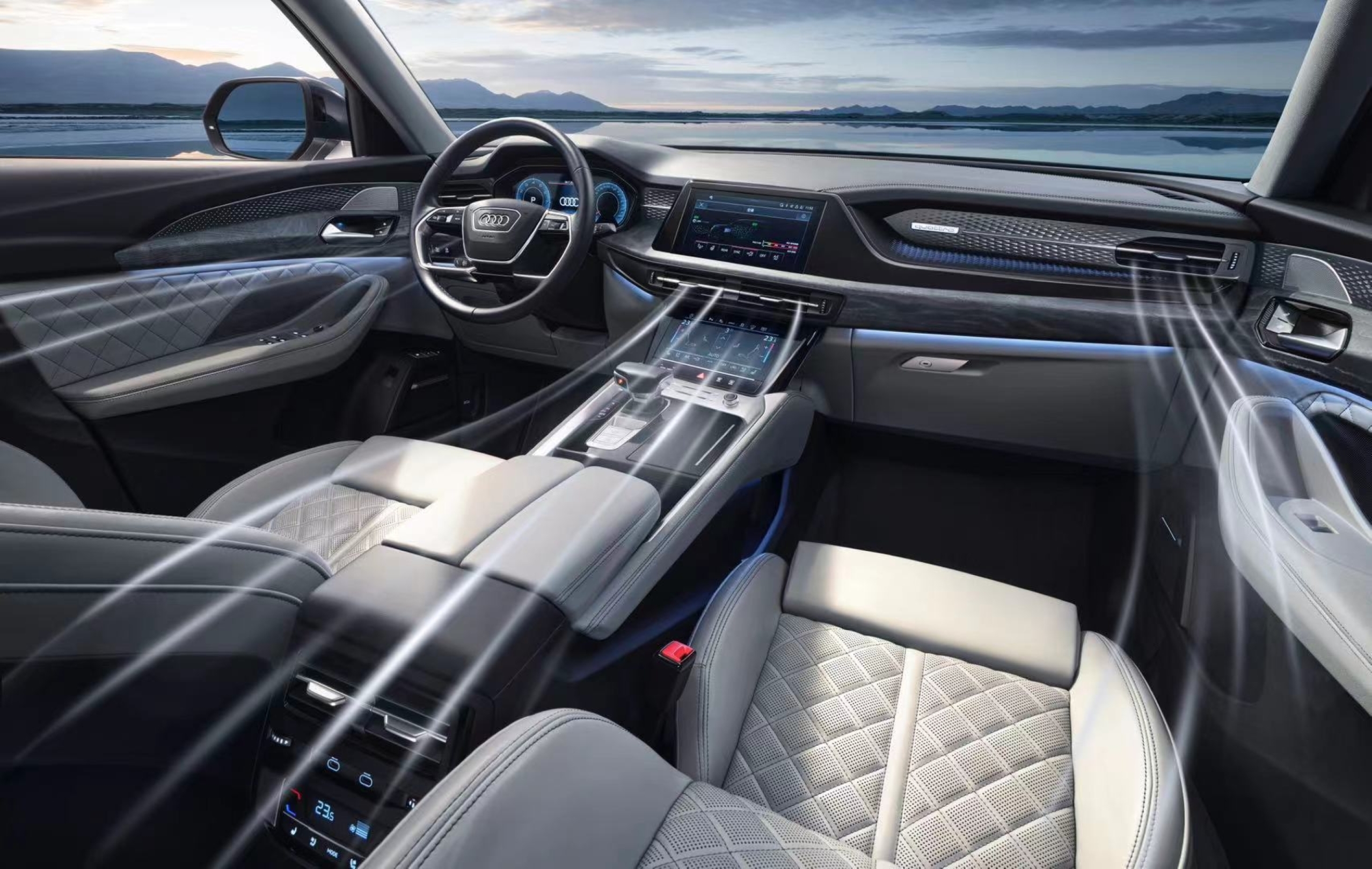 享受春日美景、呼吸新鲜空气的同时,也要留心各种过敏原和病原体的入侵。上汽奥迪Q6搭载了一整套完善的空气净化系统,主动产生负离子对车内空气进行净化、除尘、除味、灭菌等环境优化处理,捕捉空气中有害物质,带来更高阶的“智能微气候”生态体验。同时,多功能空气滤芯能快速过滤灰尘、颗粒物、PM2.5等杂质,加入特殊抗菌涂层,可防止大部分病菌、过敏原等入侵,显著提升车内空气质量,出行不必再为抵抗力较弱的孩童、老人担心,全家人共享更健康的车舱环境。