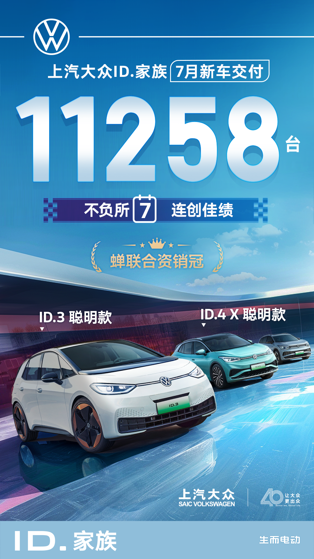 7月,在暑期各类促消费政策驱动下,购车需求持续释放。上汽大众ID.家族延续上半年势头,“热”力十足,单月新车交付11,258辆。此外,ID.家族聪明款焕新上市,智能科技显著升级,下半年强势开局。