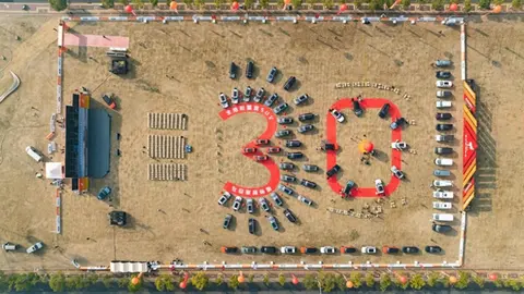 2025年12月19日,福特智趣烈马上市暨全国首批车主交付仪式在江西南昌举行。赣江之畔,夜色初起,一支由“方盒子”SUV组成的车队排成“30”字样,静静伫立。它们不是为了造型噱头,而是在提醒所有人:江铃与福特,已经携手走过整整三十年。