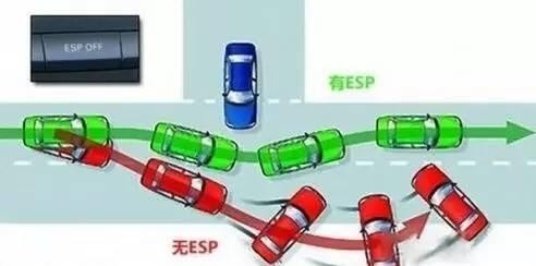 ESP(电子稳定系统),它综合了ABS(防抱死制动系统)、BAS(制动辅助系统)和ASR(加速防滑控制系统)三个系统,并且在他们的基础上增加了更多的探测和感应器,能主动控制四轮的制动力与牵引力。