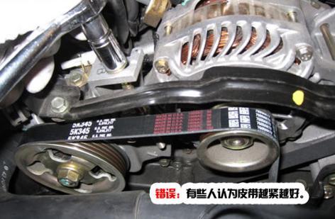有的司机认为提高风扇皮带的紧度,可以提高发动机冷却效果,因此便一个劲地提高风扇皮带的紧度。因为过紧会使轴承负荷过大,磨损加剧,功率消耗增加,同时也会使水泵轴弯曲,皮带拉长变形,寿命缩短。