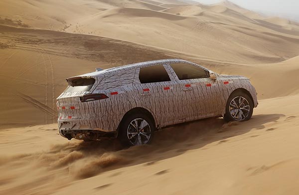 新车尾部预计会使用时下流行的贯穿式尾灯设计,可以看到与此前的王朝概念车有一定神似。同时这款车C柱之后十分修长,让整车看起来十分大气。由于没有安装后包围,我们看到该车配备了双边共两出排气,结合其左右两侧均有“加油口”设计,可以确定这款车是一款插电式混动版车型。
