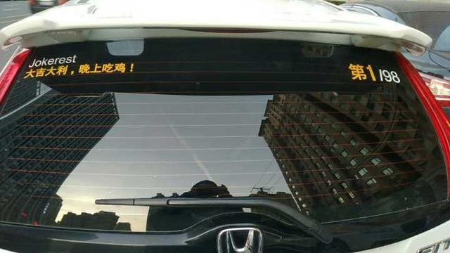吃鸡真的是一夜爆红,瞬间网吧里所有LOL都变成了吃鸡,这位飞度车主在自己的后窗也搞了个吃鸡,毫无违和感,希望他也能天天吃鸡,没有外挂。