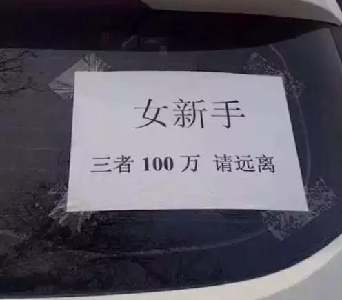 而这位女司机的才华看来还是有的,不过我表示这东西我还真有点看不懂,三者是什么意思,100万又是个什么意思,不过贴上这个东西真没什么好事,因为一个新手司机不贴实习的标志却想着去玩这个,真不怕被人家盯上吗?