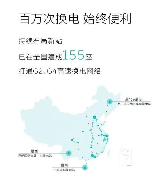 蔚来目前还在布局新的换电站,已经在全国范围内建成155座,并打通了G2京沪、G4京港澳高速的换电网络。