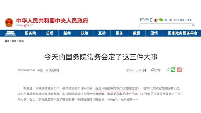 在今年10月9日的国务院常务会议上,《新能源汽车产业发展规划》通过,从技术开发创新、基础设施建设以及公关服务领域使用新能源汽车等方面都做出了要求。