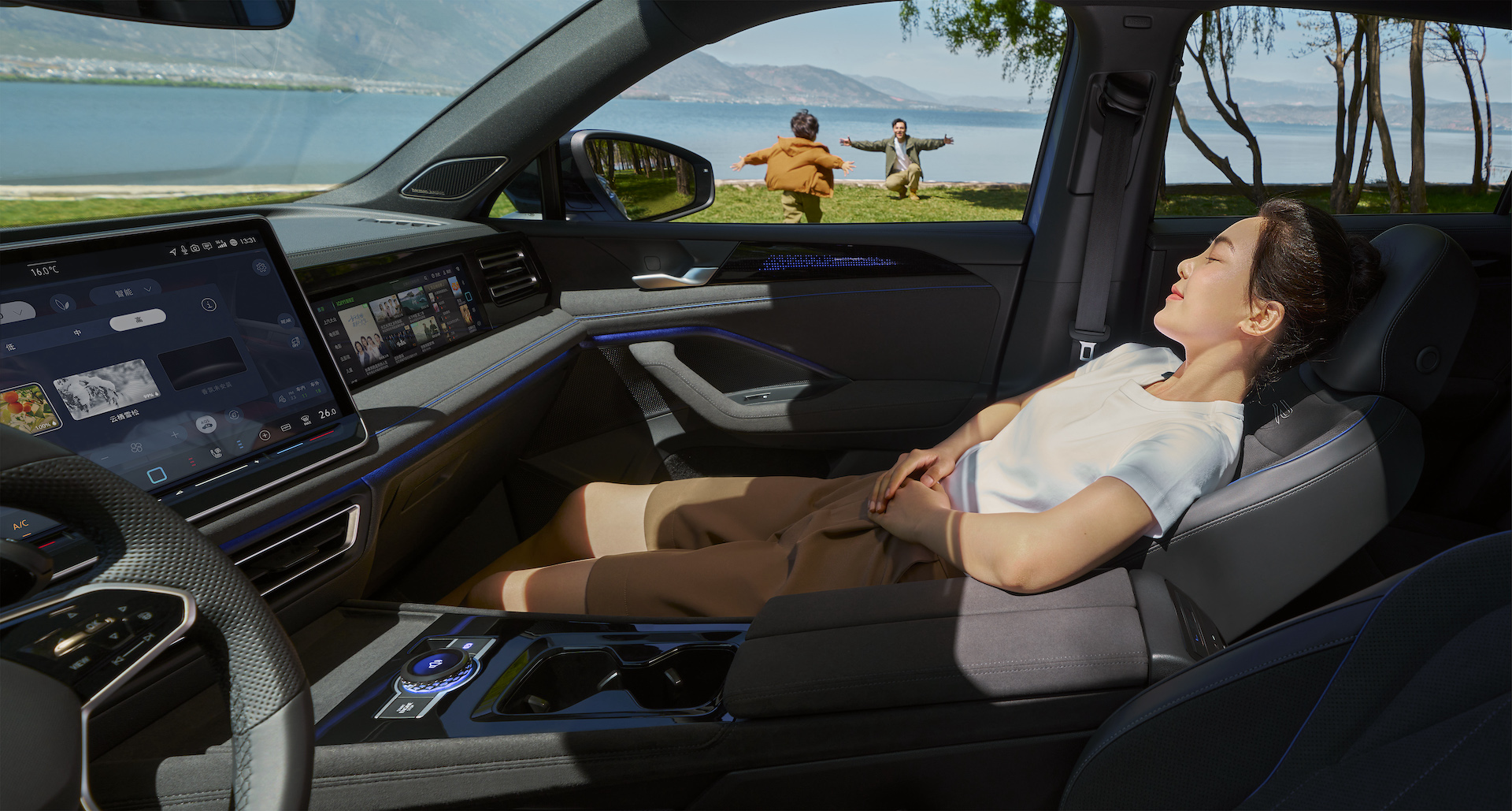 车内,方寸间尽显豪华。打孔超纤绒云感座椅、前排座椅10点按摩功能,加上座椅记忆、通风及加热等功能,让嘉宾在盛典的喧嚣之余,享受到了一份宁静与舒适;30色星空格调氛围套件和智能香氛系统,可以根据个人喜好定制车内氛围,带来专属定制的尊贵感;12扬声器哈曼卡顿音响系统,经过数百小时专业调音调教,完美还原音频原声,犹如身临演唱会现场。