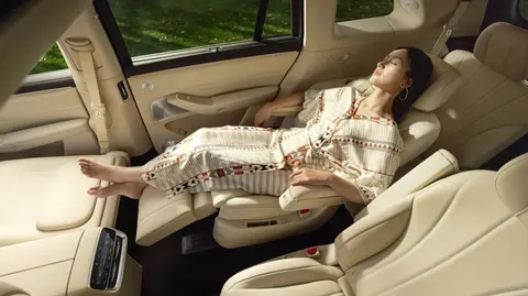 到达营地只需一键操作,座椅如魔术般折叠变换。六座版能组合出1950mm的舒适大床,五座版更能展开成令人惊叹的3.1米超长通铺。铺上柔软的垫子,抬头便是全景天窗框出的无垠夜空,银河成为今夜卧室最奢侈的吊顶。这,远不止是一个睡觉的空间。
