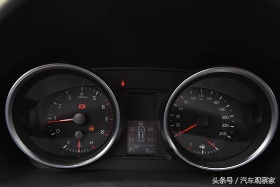双炮筒式组合仪表盘视觉效果强,其中间搭配3.5寸液晶显示屏,集成行车电脑、警示提醒信息显示及功能设定。
