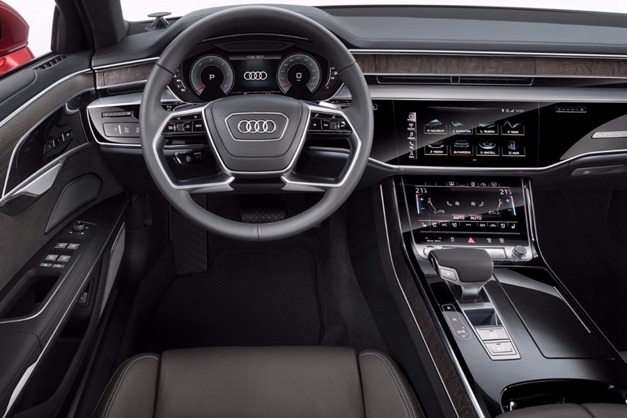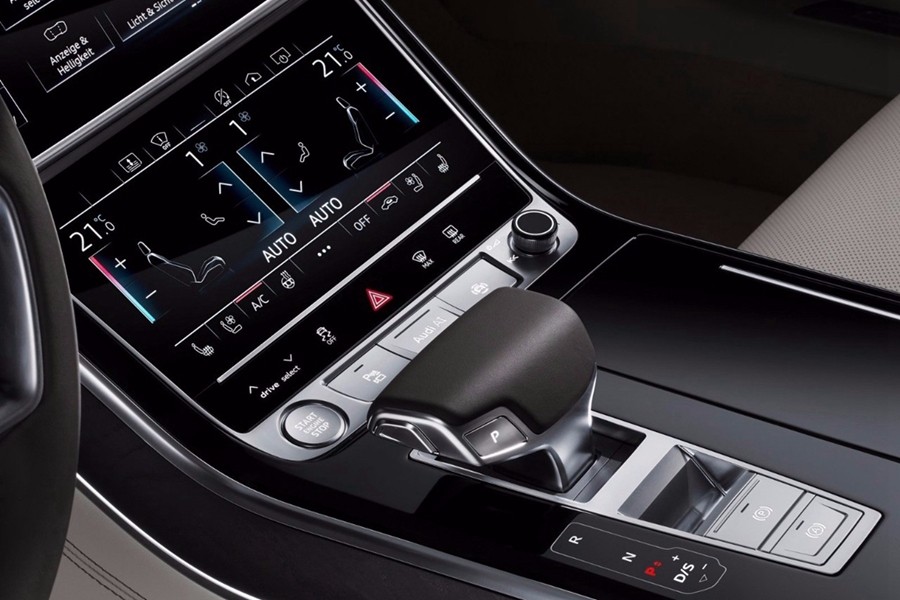内饰方面全新奥迪A8L e-tron混动版采用了全液晶仪表设计,另外中控采用了上10.3英寸+下9.0英寸的双屏幕设计,视觉效果十分出众。