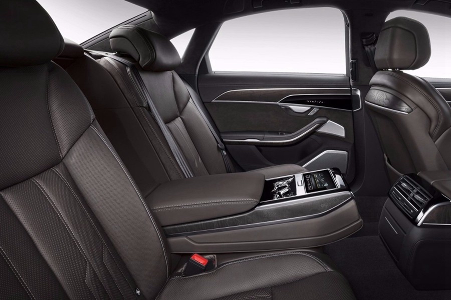 全新奥迪A8还将全系标配quattro四驱系统,而且动态四轮转向系统也出现在全新奥迪A8上。在低速行驶时后轮与前轮反向转动,最多5°,使得长轴距车型和标轴车型的转弯直径在11.4米和11.8米。中高速行驶时,前后车轮同向转动,最多2°,以保持更稳定的变道姿态。