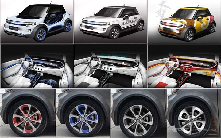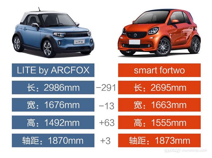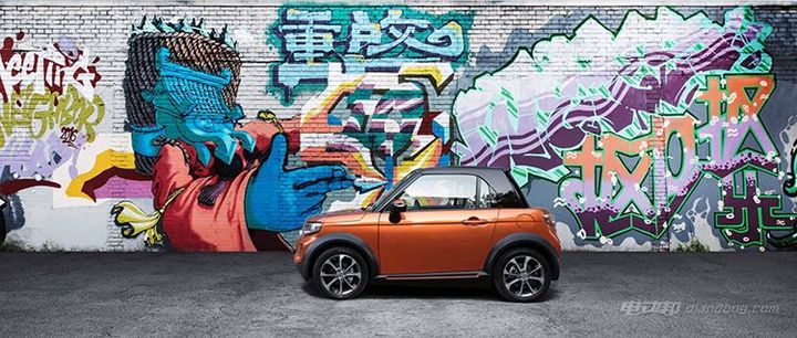 从官图中可以看出,LITE车型尺寸小巧,采用双门设计,轴距比smart fortwo还要小了3mm,配合背景墙上的涂鸦,目标人群显而易见,为年轻时尚人群。