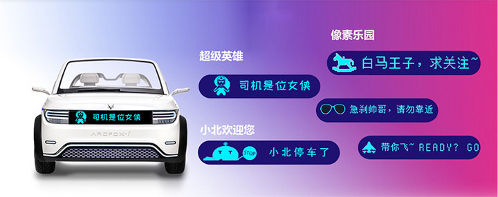 定制车辆外观之外,车辆前后部的显示屏还可以自定义文字,显示效果如下图所示: