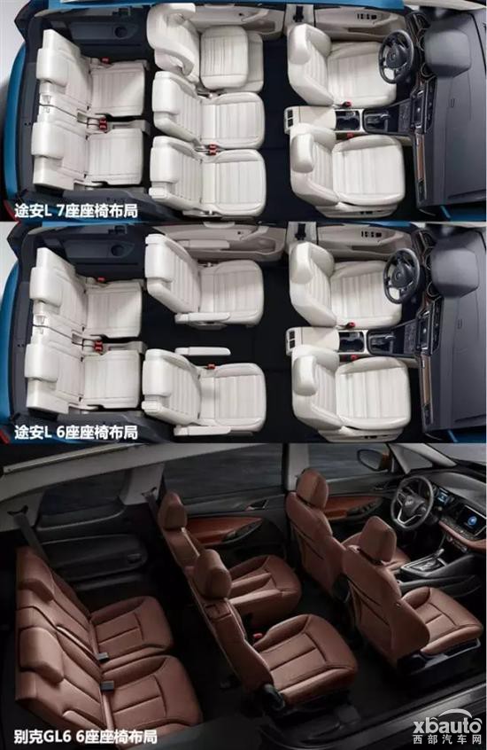 在布局方面,途安L能够给消费者提供多一种选择的余地。两车的三围和轴距都差不多,GL6比途安L要长,途安L则要更宽。
