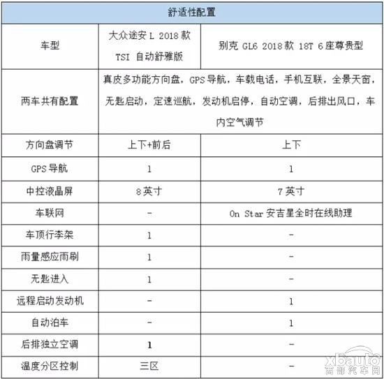 从表中可以很直观的看出,除开两车的相同配置,GL6的车联网、自动泊车和远程启动发动机这些功能似乎很少人会用得着,而且方向盘不像途安L可以4向调节。