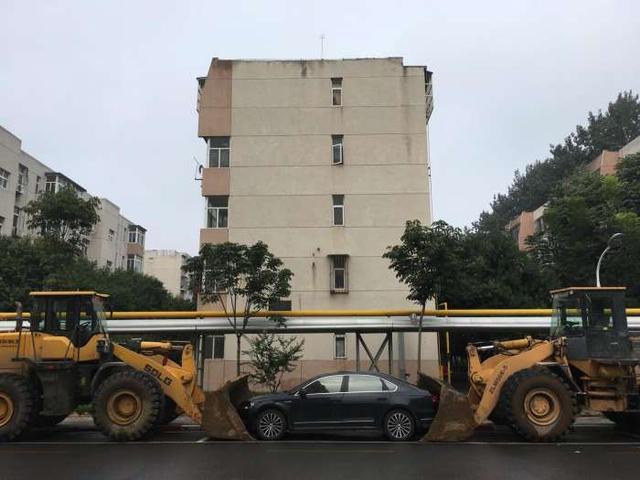 从细节上我们可以看到,挖土机的铲子恰巧卡在了汽车的底盘下,这样即使黑色大众的驾驶技巧再厉害,也不可能从这两辆铲车中开出来。随着这两辆挖土机停放时间越来越久,围观的群众也多了起来,当问起原因后,大家也都表示不太清楚,只是说晨练的时候就看到了这样的情形。